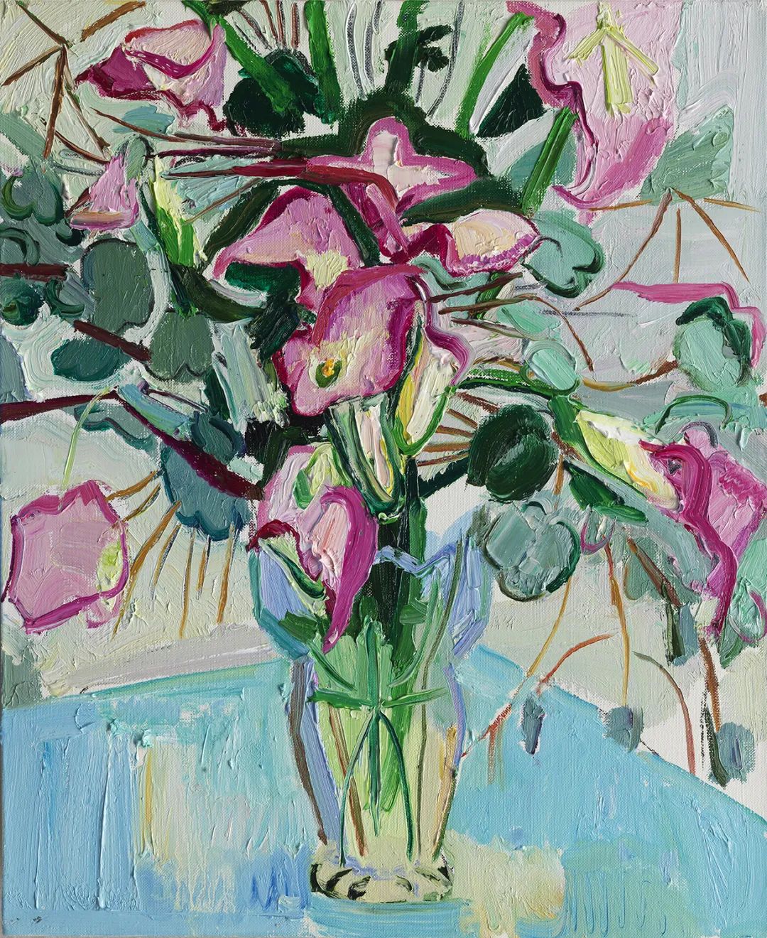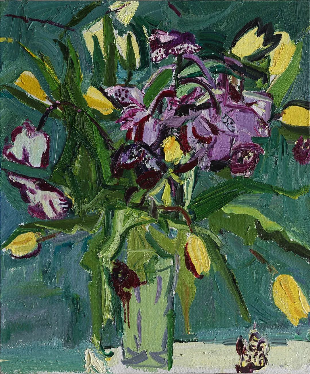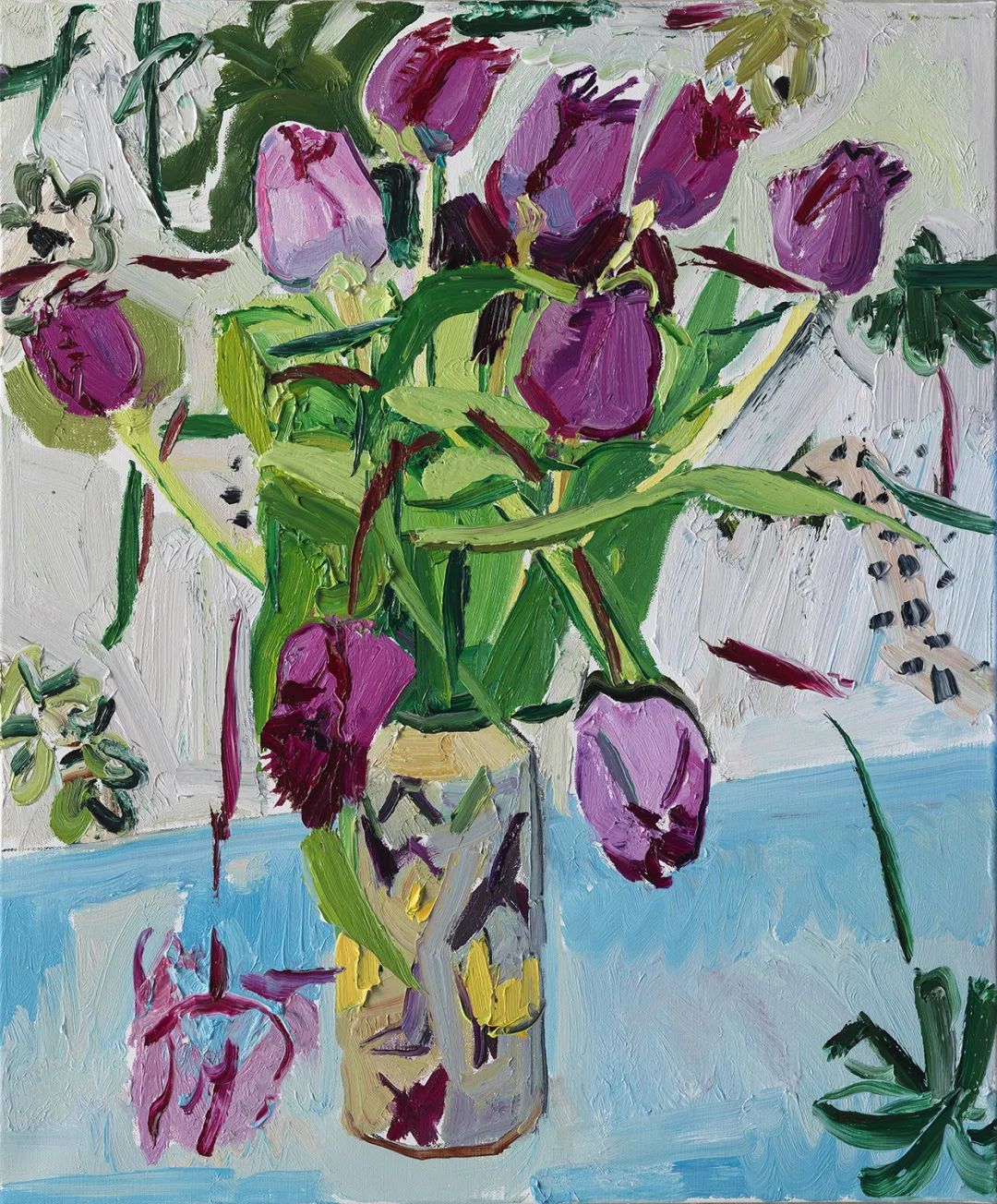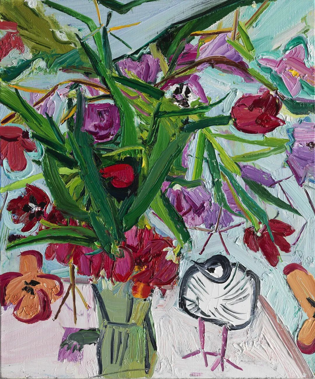 闫平《郁金香和小鸟》60×50cm 布面油画 2023年